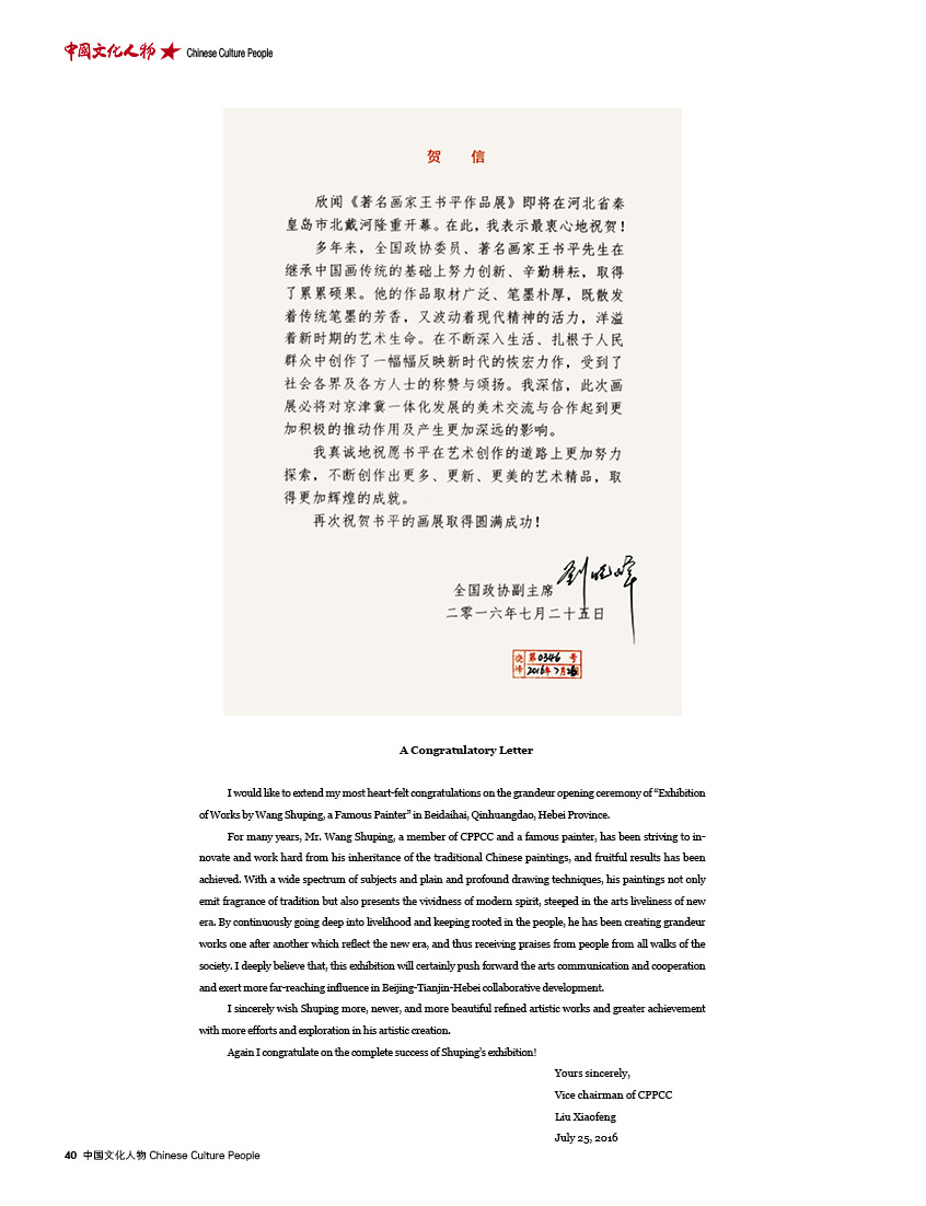 王书平,全国政协委员、中华海外联谊会理事、中国美协理事、天津市文联副主席、天津市美术家协会主席