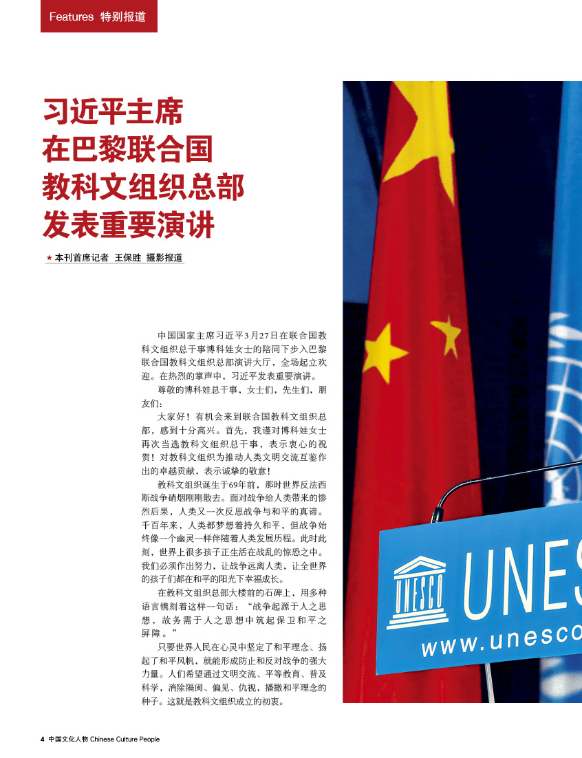 习近平主席在巴黎联合国教科文组织总部发表重要演讲