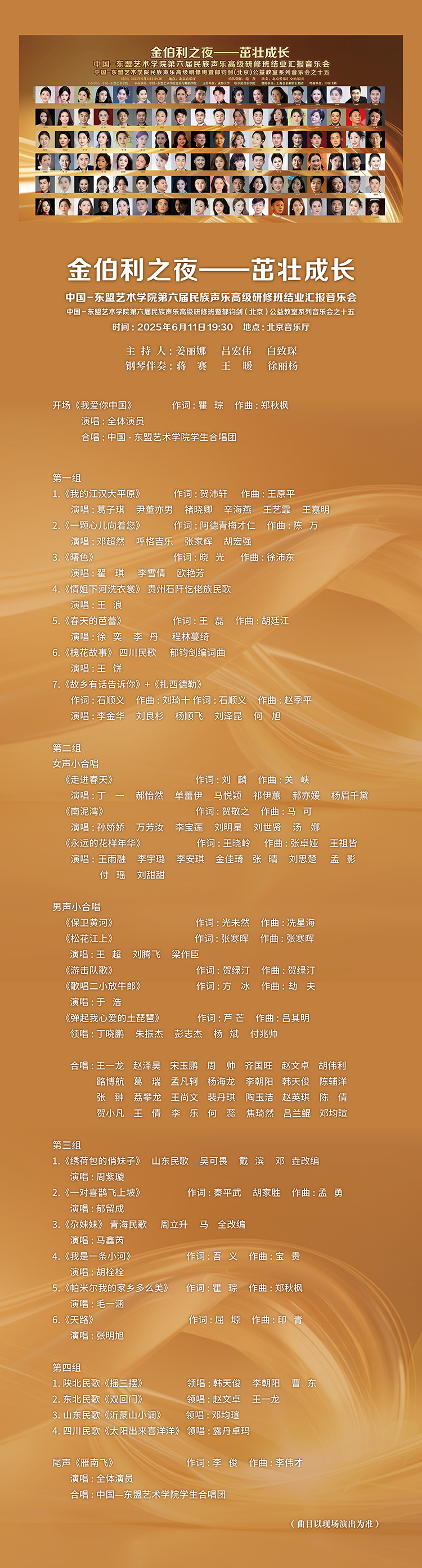 “金伯利之夜—茁壮成长”中国-东盟艺术学院第六届民族声乐高级研修班结业汇报音乐会11日晚在北京音乐厅唱响