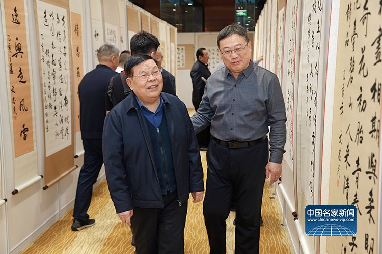 解放军原副总参谋长张黎上将在文忠民将军和中国新闻出版书法家协会主席王云武的陪同下参观展览