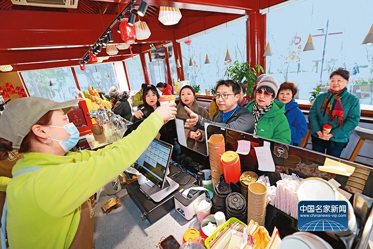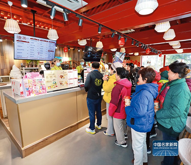 陶然亭澄茶店内,游客排队井然有序