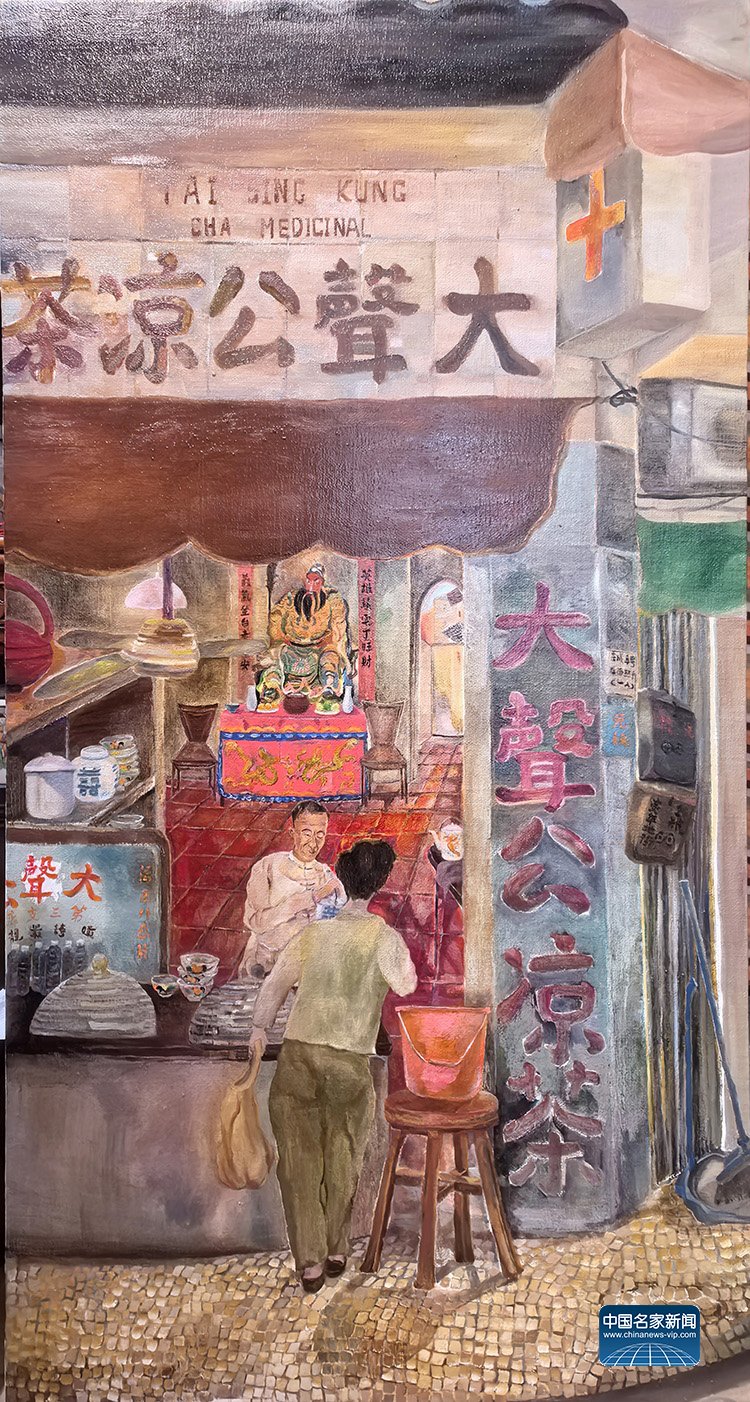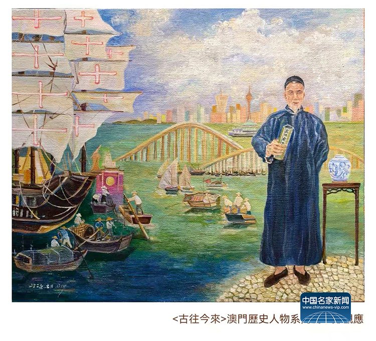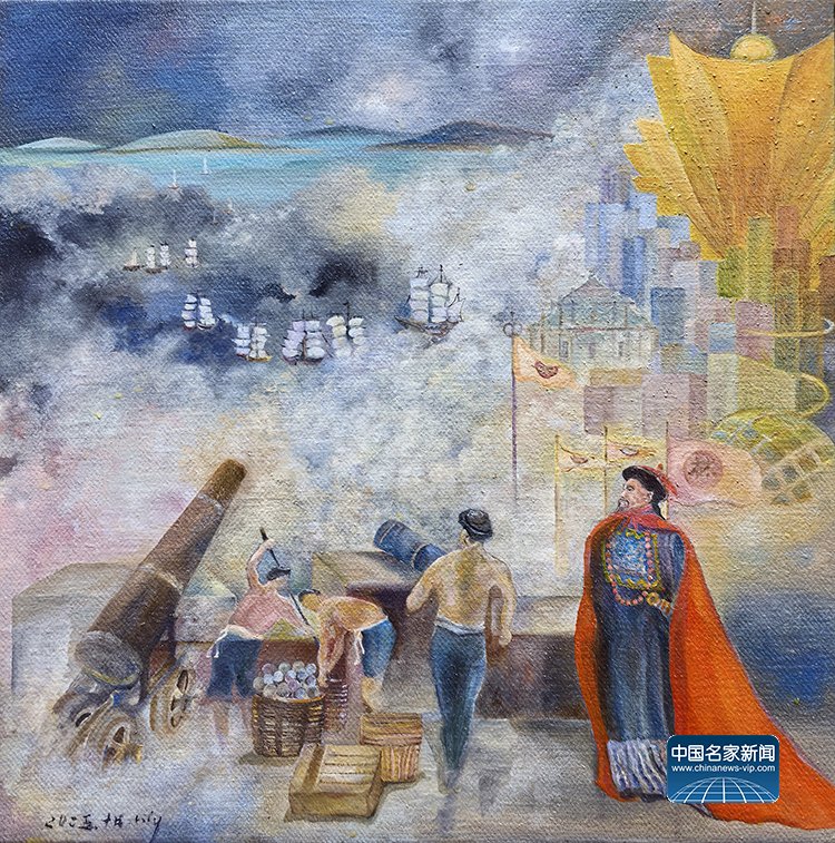 作为一位扎根澳门二十多载的创作者,Lily此次展出的28幅画作,包含油画、丙烯、水彩、墨彩,正是“此”与“彼”的交织产物。“画说澳门凉茶”系列,见生活之道;“澳门烟火”系列,见时间之痕;“古往今来”澳门历史人物系列,是与先贤的对话,借由前辈们的精神火炬,探寻一座城市的历史脉络。