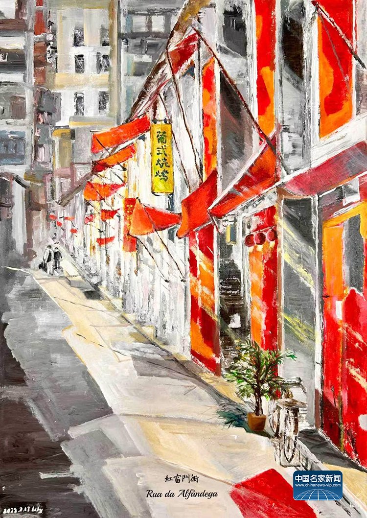 Lily的画笔,从不满足于复刻地标,而是以“新澳门人”的独特视角,敏锐地挖掘着小城里那些被忽略的细节。水彩的通透、油画的沉厚与丙烯的锐度,共同调和出她独特的艺术语言——这既是双重文化身份在她生命画布上的交融,亦是她对澳门这座城市的深情凝视。在此凝神驻足,于方寸之间,见天地,见历史……在此,见彼!