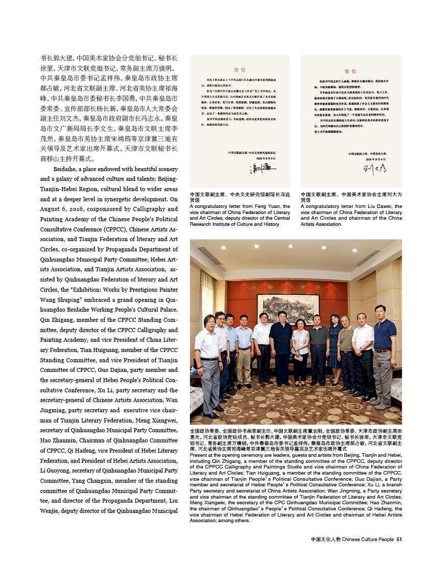 王书平,全国政协委员、中华海外联谊会理事、中国美协理事、天津市文联副主席、天津市美术家协会主席