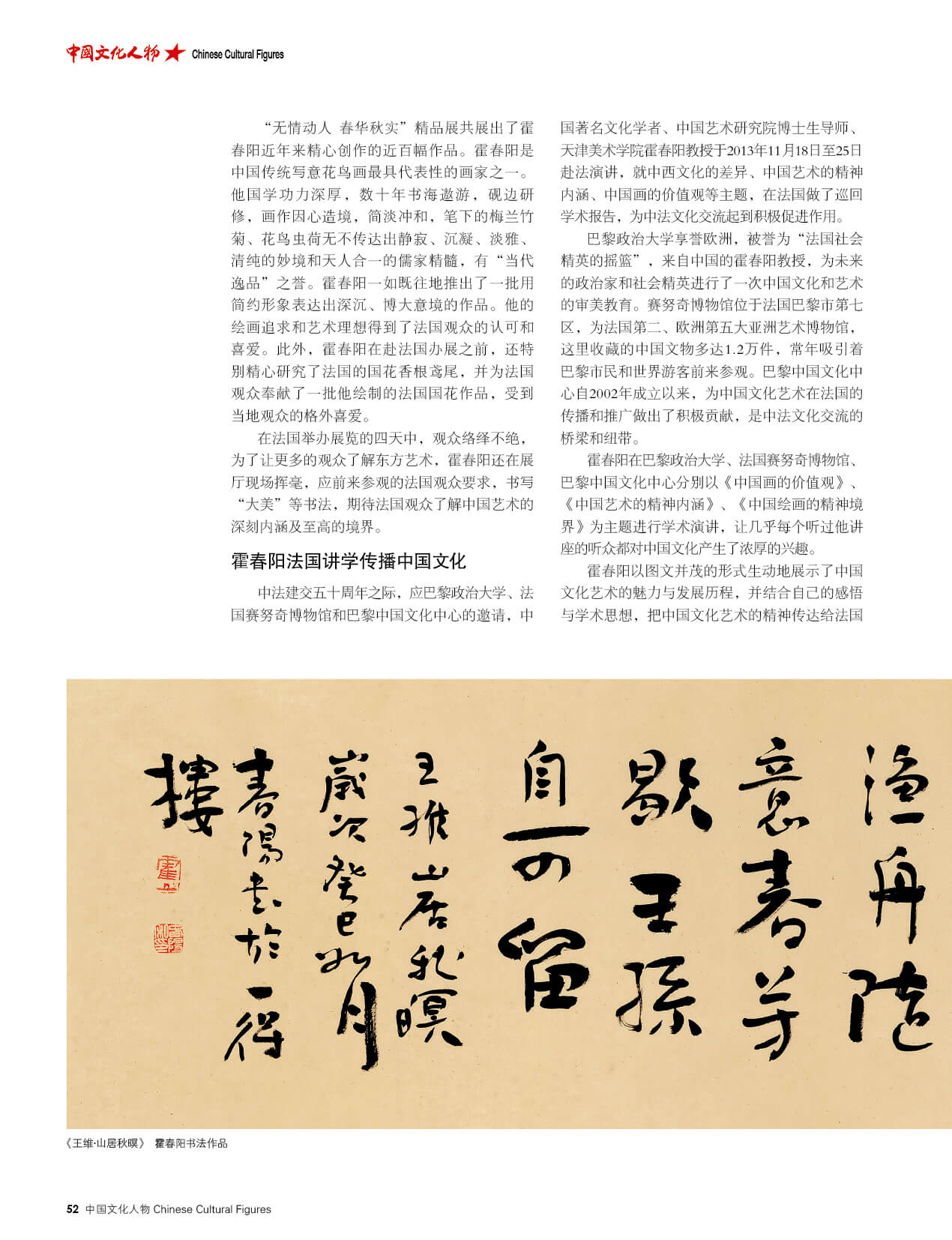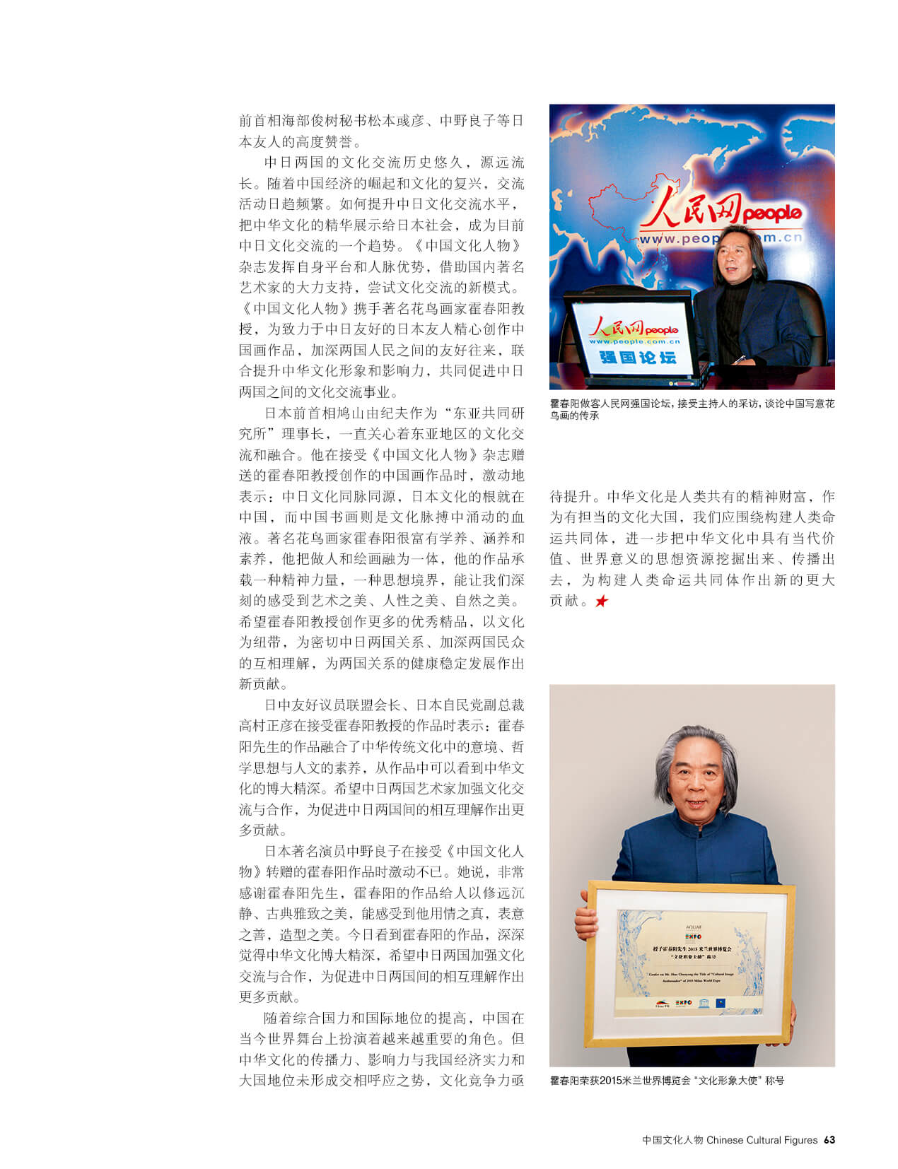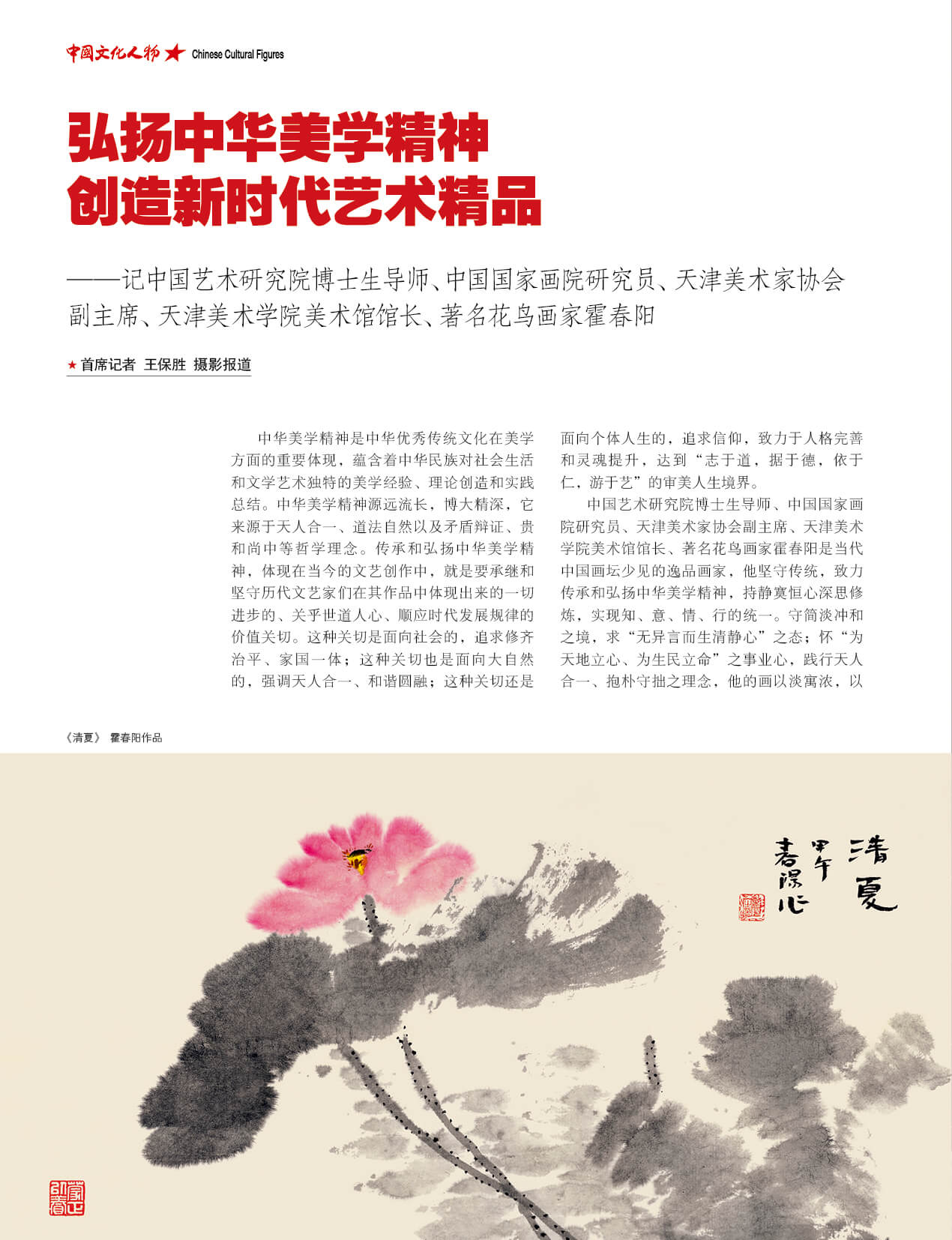 霍春阳,中国国家画院研究员、中国艺术研究院博士研究生导师、中国美术家协会会员、天津美术家协会副主席、天津美术学院美术馆馆长、天津美术学院教授、著名花鸟画家。