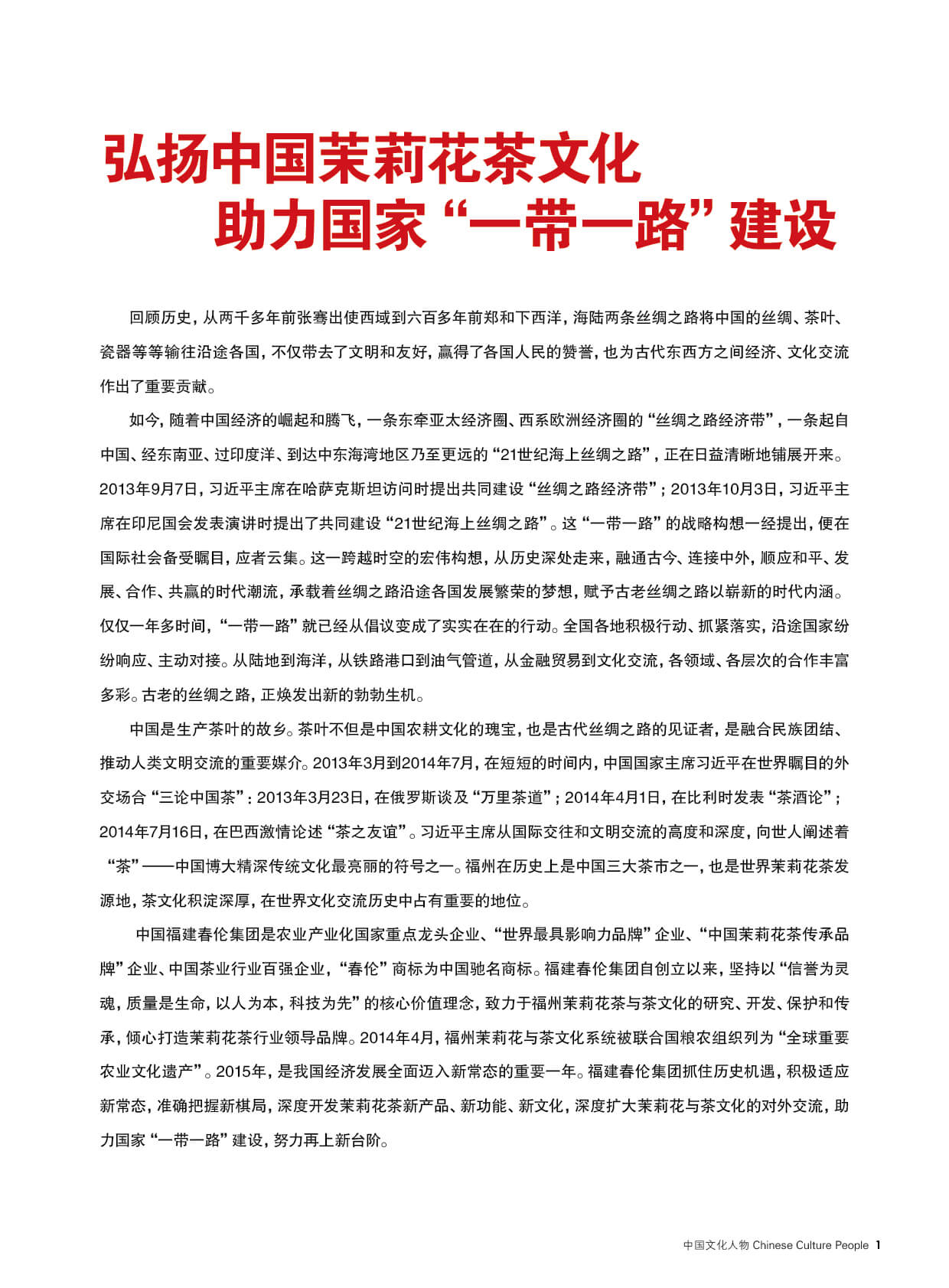 弘扬中国茉莉花茶文化 助力国家“一带一路”建设