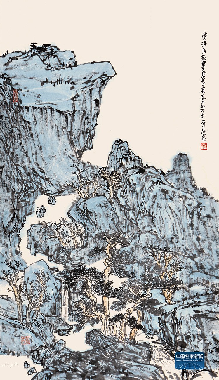 家国情怀,从来不是空洞的口号,而是融入艺术创作的精神内核与情感表达。李庚的作品,始终饱含着对中华山河的深情眷恋,对民族精神的生动诠释,呼应着习近平文化思想中“文艺要为时代立言、为民族铸魂”的核心要求。从早年传承“李家山水”的雄浑厚重,到后期创作“无尽的江山”系列的壮阔苍茫,再到以唐人诗意入画的清雅悠远,他的笔墨始终围绕“家国山河情”展开,将个人对故土的热爱、对民族的认同,转化为可感可知的艺术形象。