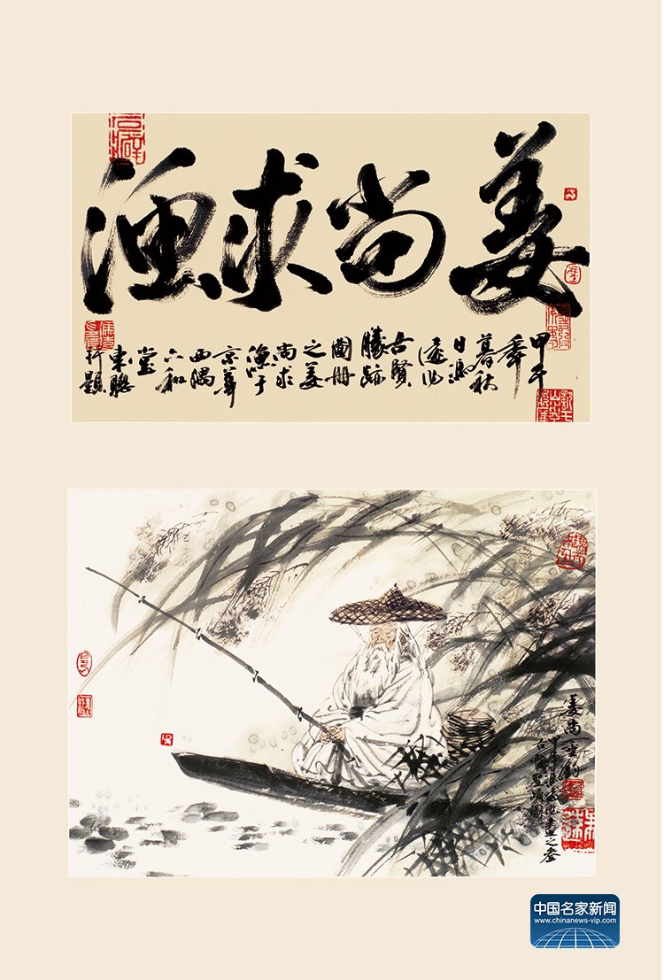 “Jiang Shang Seeking Fish” (58×82cm) by Feng Yuan