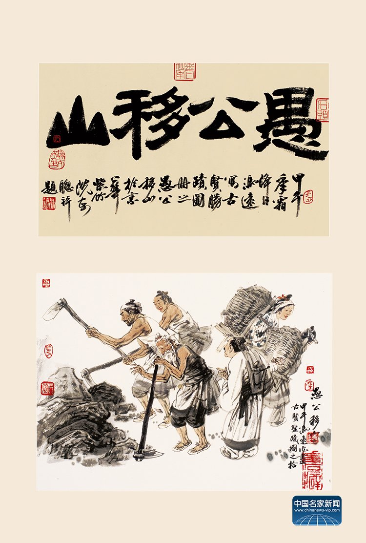 “Yu Gong Moving the Mountains” (58×82cm) by Feng Yuan