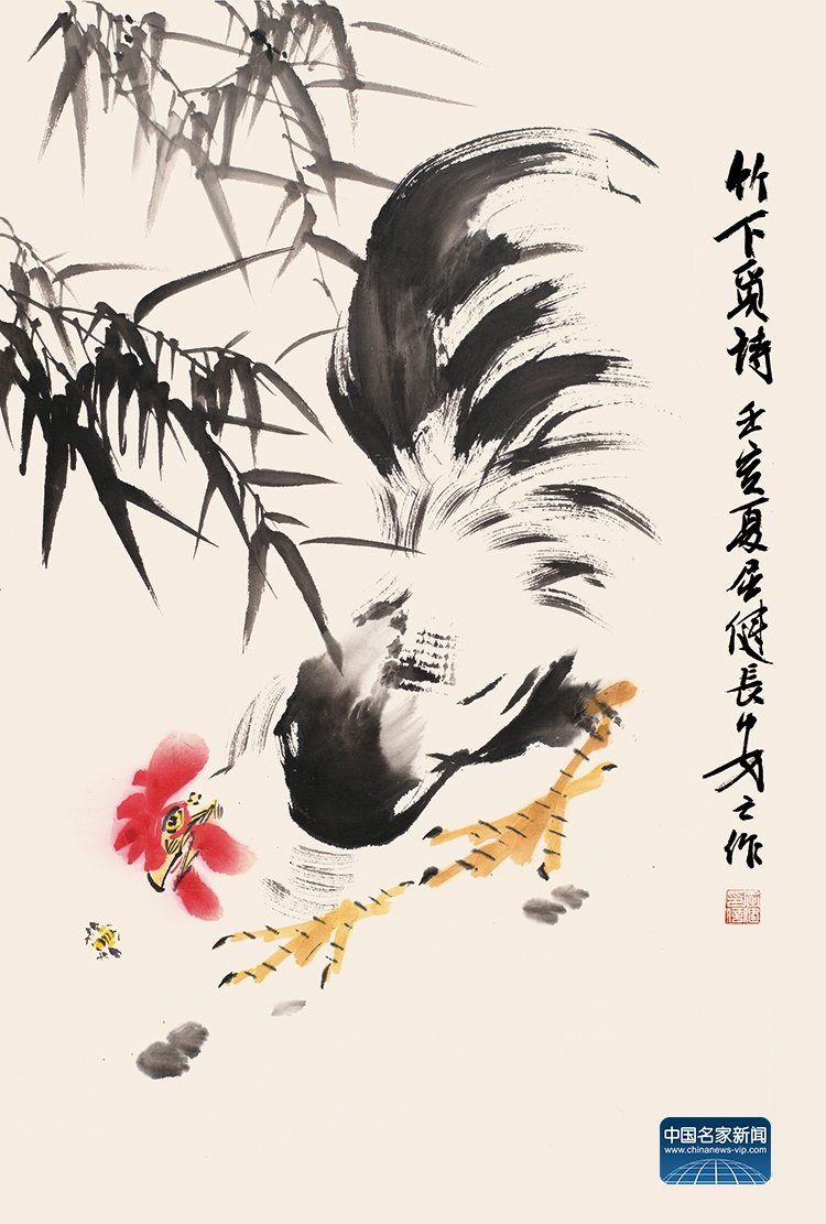 Qu Jian’s freehand flower-and-bird paintings radiate luminous clarity. His ink-splashed compositions exude fresh vitality. His masterful technique involves meticulously refining the lines that define the contours of rocks and trees, which are enhanced by layered ink washes that create dynamic gradations of dryness and moisture. The branches and rocks possess a strikingly textured solidity, their outlines blend fluidity and solidity, masterfully embodying the harmonious interplay of brushwork and ink in traditional Chinese art. Demonstrating extraordinary mastery, Qu seamlessly integrates brush, ink, and color into a unified expression, revealing an artistic vision that transcends the conventional constraints of traditional techniques.