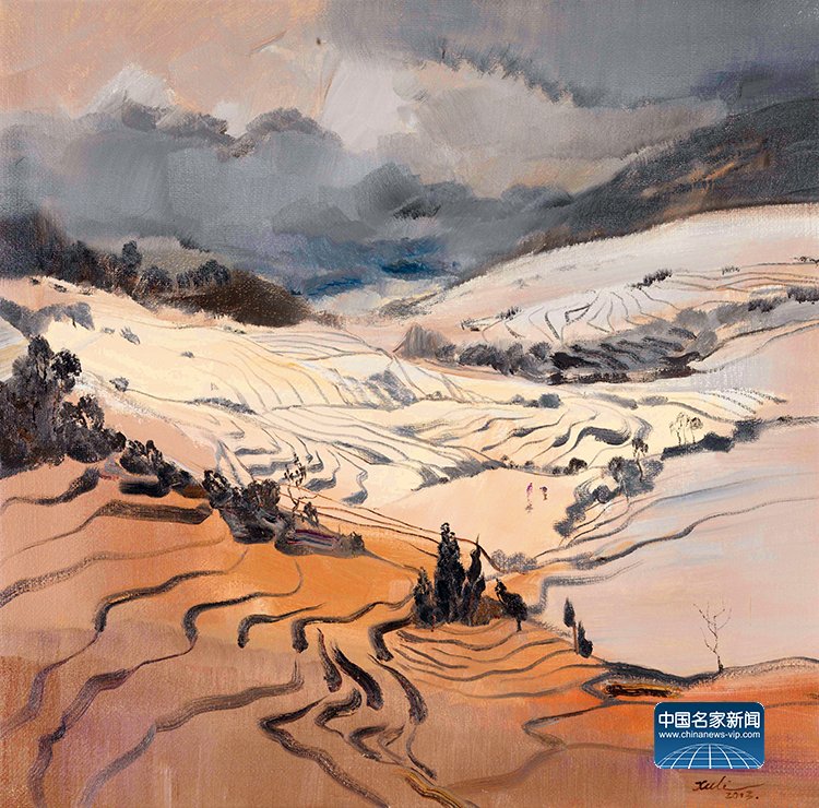徐里是当代中国最具代表性的艺术家和美术界公认的领军人物之一。他把油画艺术的本体语言特质与中国传统绘画艺术的手法相融合,吸取了中国水墨画的写意手法,放笔挥写,借鉴传统山水画的章法、布局、境界、意韵,同时在运笔设色中呈现出鲜明的油画艺术的语言特色和现代性的审美趣味。