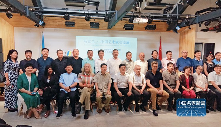 Li Geng took a group photo with the artist guests attending the opening ceremony of the "Ukraine China Artist Exchange Exhibition and Taras Shevchenko's Collection Works Touring Exhibition at Beijing Art Museum".