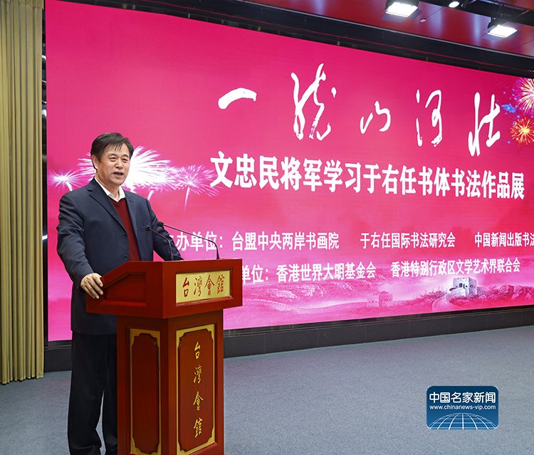 1月15日,由台盟中央两岸书画院、于右任国际书法研究会、中国新闻出版书法家协会联合主办,世界大明基金会(香港)、香港特别行政区文学艺术界联合会协办的“一统山河壮——文忠民将军学习于右任书体书法作品展”在北京台湾会馆隆重开幕