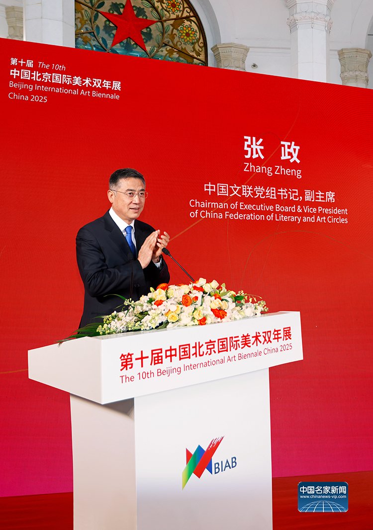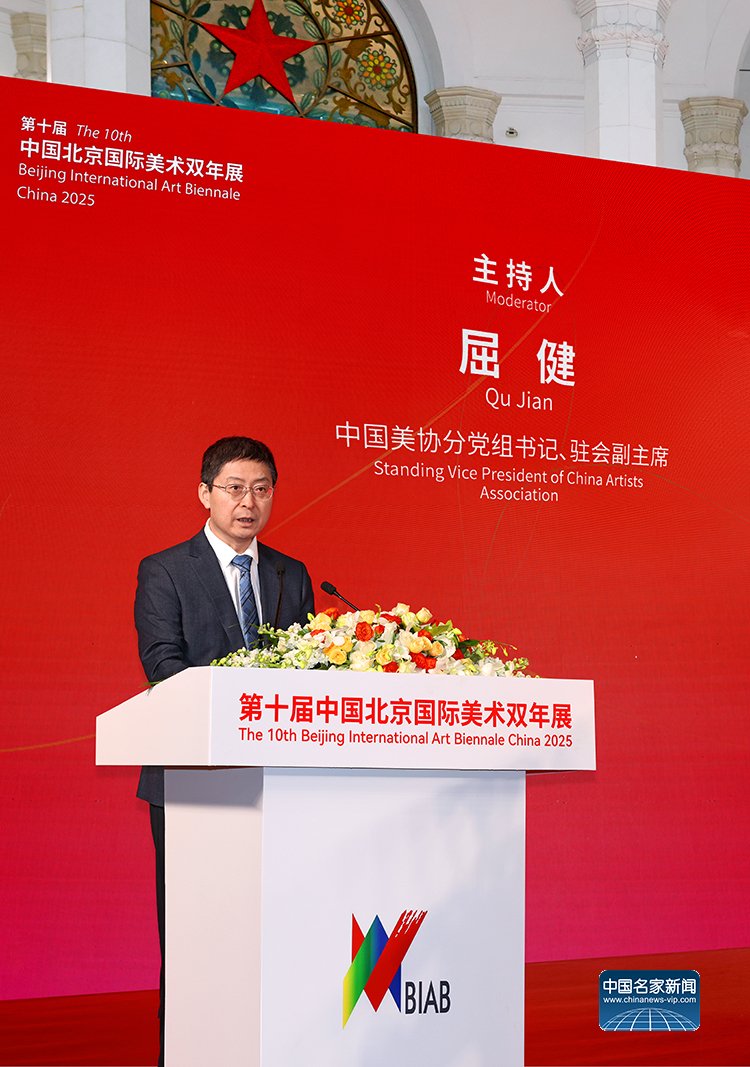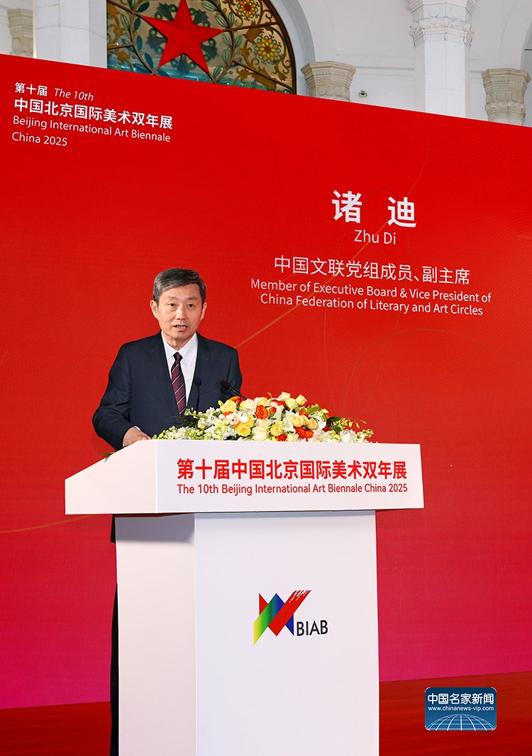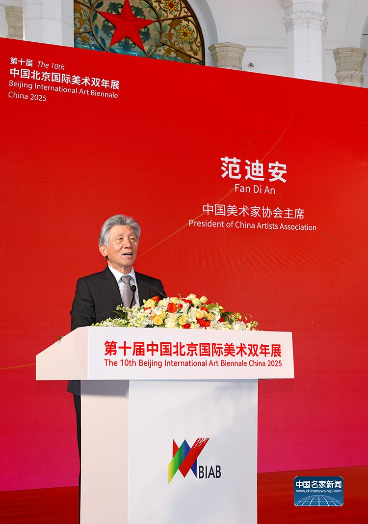 中国美术家协会主席范迪安在致辞中表示,北京国际美术双年展始终坚持立足北京、展现中国、连通世界的定位,既展示中国美术新时代创新成果,也呈现国际艺术新趋势。本届双年展蕴含深厚文化内涵与当代文化理想,艺术语言的创新融入鲜明时代道义,充分展现当代中国与全球艺术形态的多样共生景象。