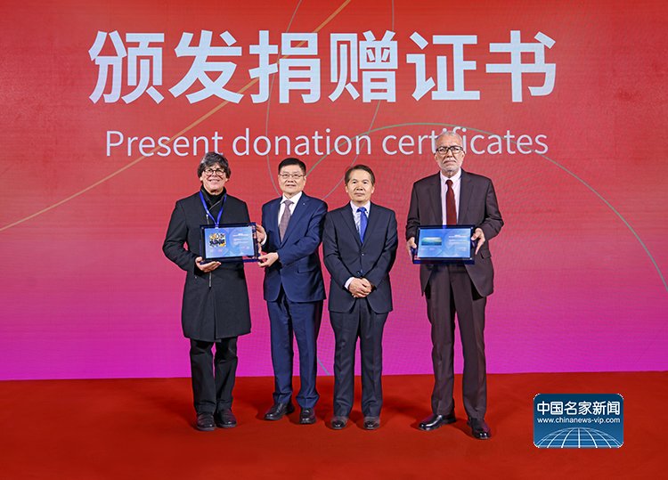 开幕式现场还举行了捐赠证书颁发仪式。中国美术家协会分党组成员、副秘书长、一级巡视员朱虹子为澳大利亚参展艺术家彼得·普莱颁奖;首旅集团党委书记、董事长白凡为巴基斯坦艺术家索拉娅·西坎德尔颁奖,其证书由巴基斯坦驻华大使馆新闻部长曼祖尔·阿里·梅蒙代为领取。