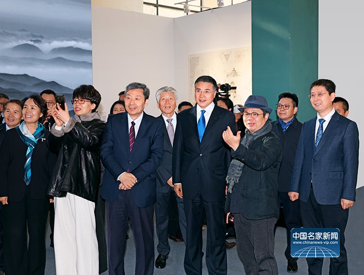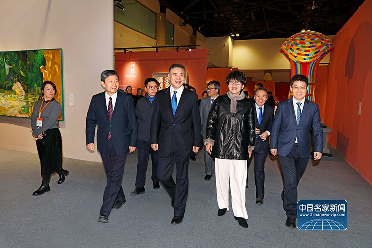 中国文学艺术界联合会党组书记、副主席张政在中国文学艺术界联合会党组成员、副主席诸迪,中共北京市委常委、宣传部部长孙军民,中国美术家协会分党组书记、驻会副主席屈健等人的陪同下参观展览