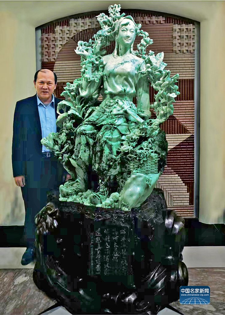 梁晚年捐赠的《滴翠盈银》妈祖翡翠玉雕被北京人民大会堂永久收藏